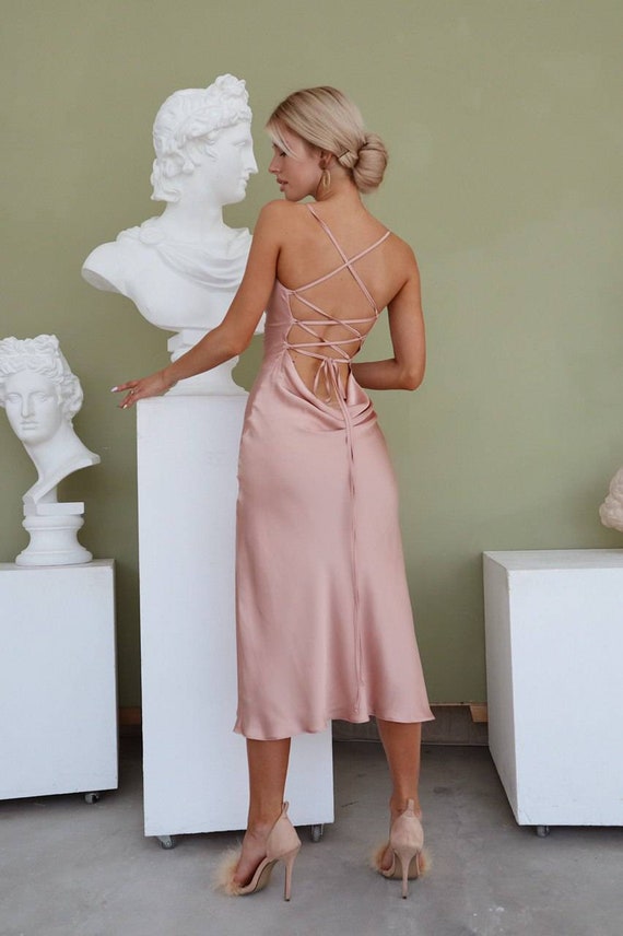 Dusty Pink Silk Slip Dress Cowl Neck Powder Midi Dress Bare Etsy