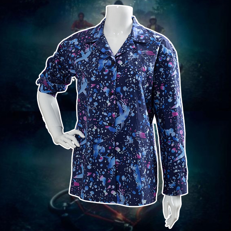 Stranger Things Season 3 Eleven Cosplay Costume Long Sleeve Printed Shirt Blue Specialty Costumes Reenactment Theater