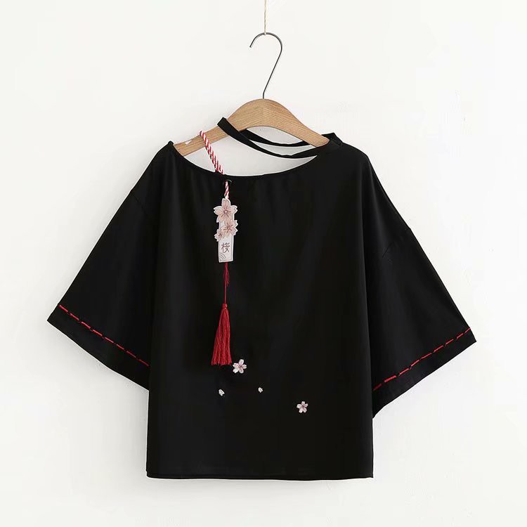 Japanese Style Vintage Women Short Sleeves Plain Black T Shirts Tees Casual Tops Shopee Singapore