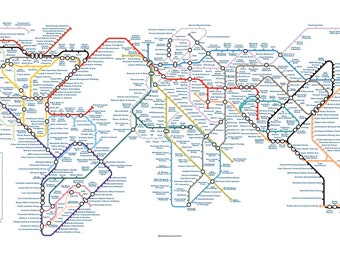 A Subway Map Tube Map Metro Map Of The World A3 Size 16in X 12in Approx World Map Art Print Trem