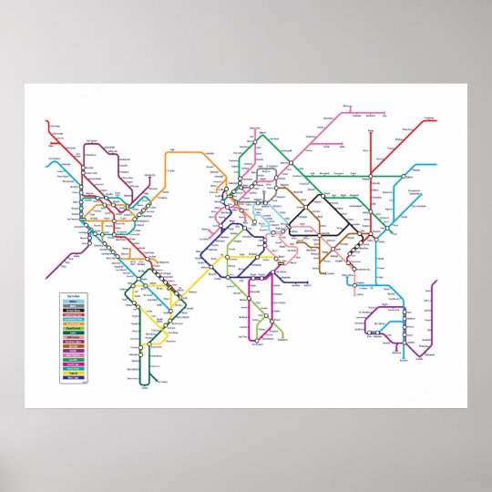 World Metro Tube Subway Map Poster By Michael Tompsett