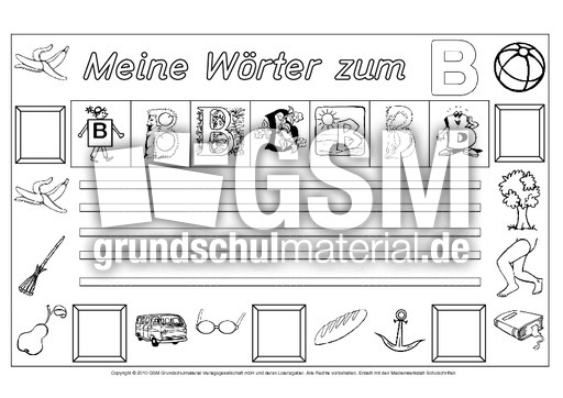 Worter Zum B Freies Schreiben Grundschulmaterial Fibel Deutsch Klasse 1 Grundschulmaterial De