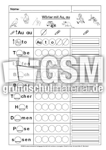 18 Worter Mit Au Jo Jo Fibel In Silben Lesen Lesen Deutsch Klasse 1 Grundschulmaterial De