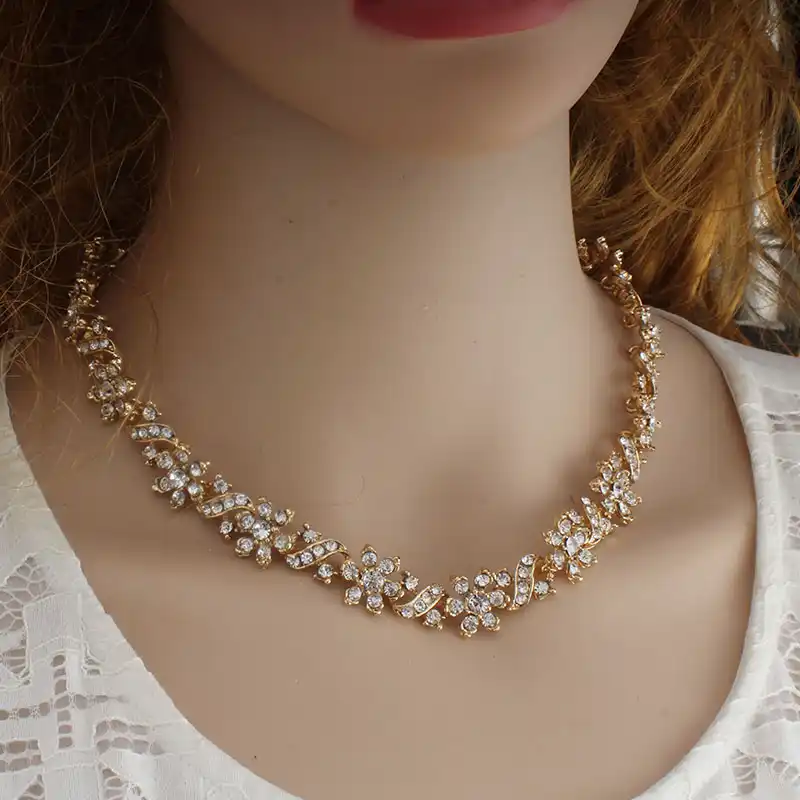 Elegant Rose Frauen Schmuck Braut Hochzeit Rhinestone Halskette Ohrring Sets Amazon De Schmuck
