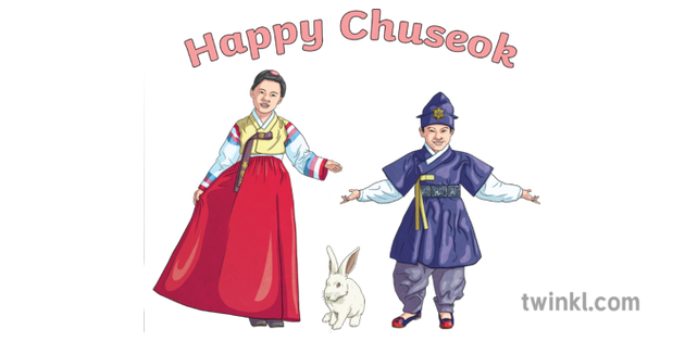 Boy And Girl In Chuseok Clothing With White Rabbit And Happy Chuseok 2 5