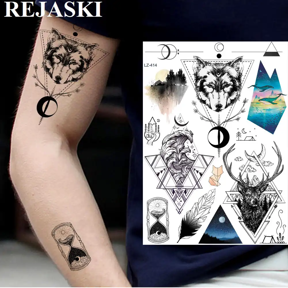 Rejaski Diy Realistic Geometric Surf Triangle Temporary Tattoos For Men Wolf Sticker Diamond Tattoos Deer Art Inbox Tattoo Sheet Temporary Tattoos Aliexpress