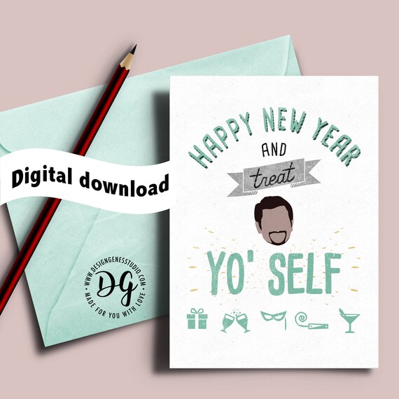 Printable Treat Yo Self New Year Card Parks And Rec Hny Card Etsy