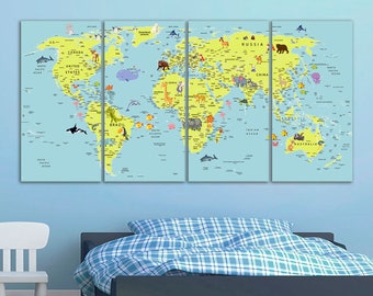 Animal World Map Print Kids World Map Poster Nursery World Map Large World Map Nursery Art Kids Room Decor Playroom Map Kids Map Art Kids World Map Map Nursery World Map