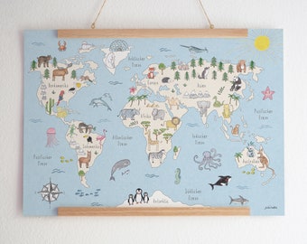 Poster Weltkarte Mit Tieren Kindersachen Babysachen
