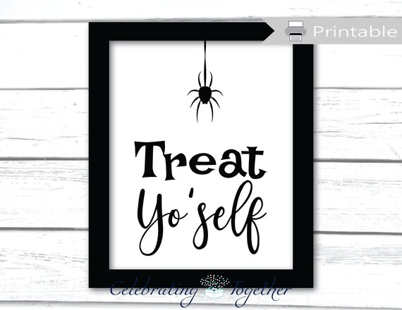 Printable Treat Yo Self Sign Diy Happy Halloween Decor Instant Download Hanging Spider Sign Halloween Party Decorations Candy Bowl Sign By Celebrating Together Catch My Party