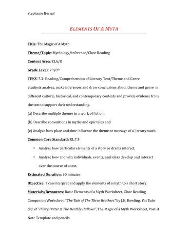 The Three Brothers Lesson Plan On J K Rowling S Short Story Tpt