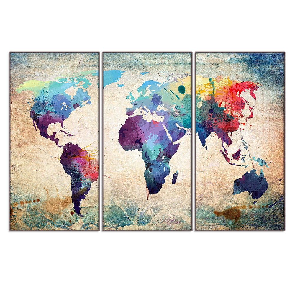 3 Panel Colorful World Map Canvas Wall Art Retro Vintage Large Map Of The World Masterpiece Framed Or Unframed Ready To Hang Parksideave Marketplace