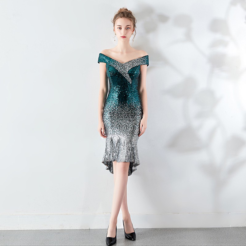 Europe And America Elegant Short Mermaid Evening Dress Vintage Gradient Sequin Dress Package Hip Sexy Party Dresses Shopee Singapore