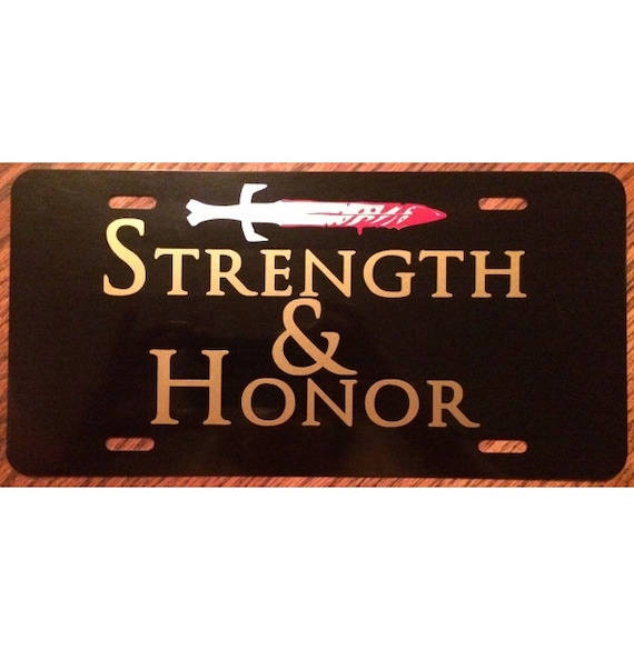 Strength and honor. Description "Strength and Honor" is a limited edition mixed media lucite sculpture by Christopher Pardell Engraved with the artists signature and number, this piece comes with a certificate of authenticity Measures approximately 1625" x 16" x 65". Strength and Honor Mixed Martial Arts is the new upcoming studio in Rancho Cucamonga Jeff Frater the owner and head instructor has made many champions for youth and adult competitors in Brazilian Jiu Jitsu, Pankration and MMA since 1998. According to historians, strength and honour were one of the two main Roman virtues, so I don't see why the Romans couldn't have said it or something like it In fact, I think that it's highly likely.