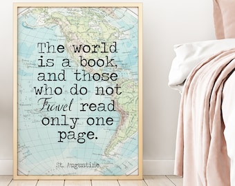 Travel Quote Map Print The World Is A Book