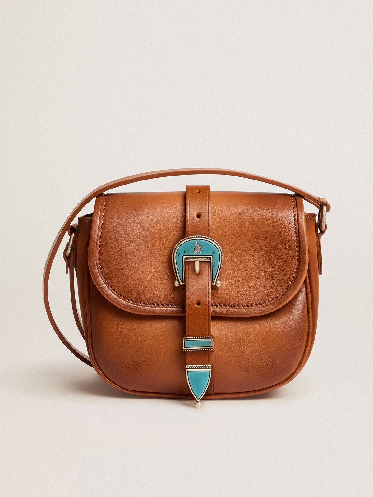 Tasche Rodeo Bag Small Aus Hellbraunem Leder Mit Azurblauer Schnalle Golden Goose
