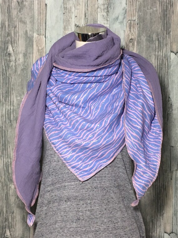 Musselin Dreieckstuch Damen Xxl Rosa Wellen Lila Etsy