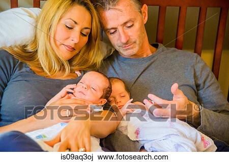 Parchen Mit Neugeborenes Zwilling Madchen Und Junge Stock Bild Is09aq3oj Fotosearch
