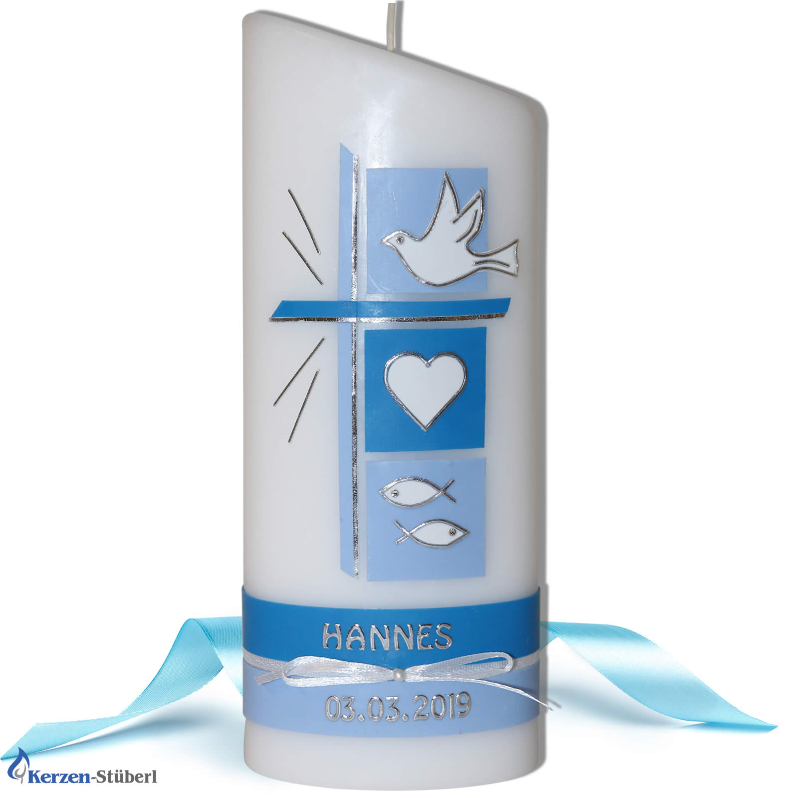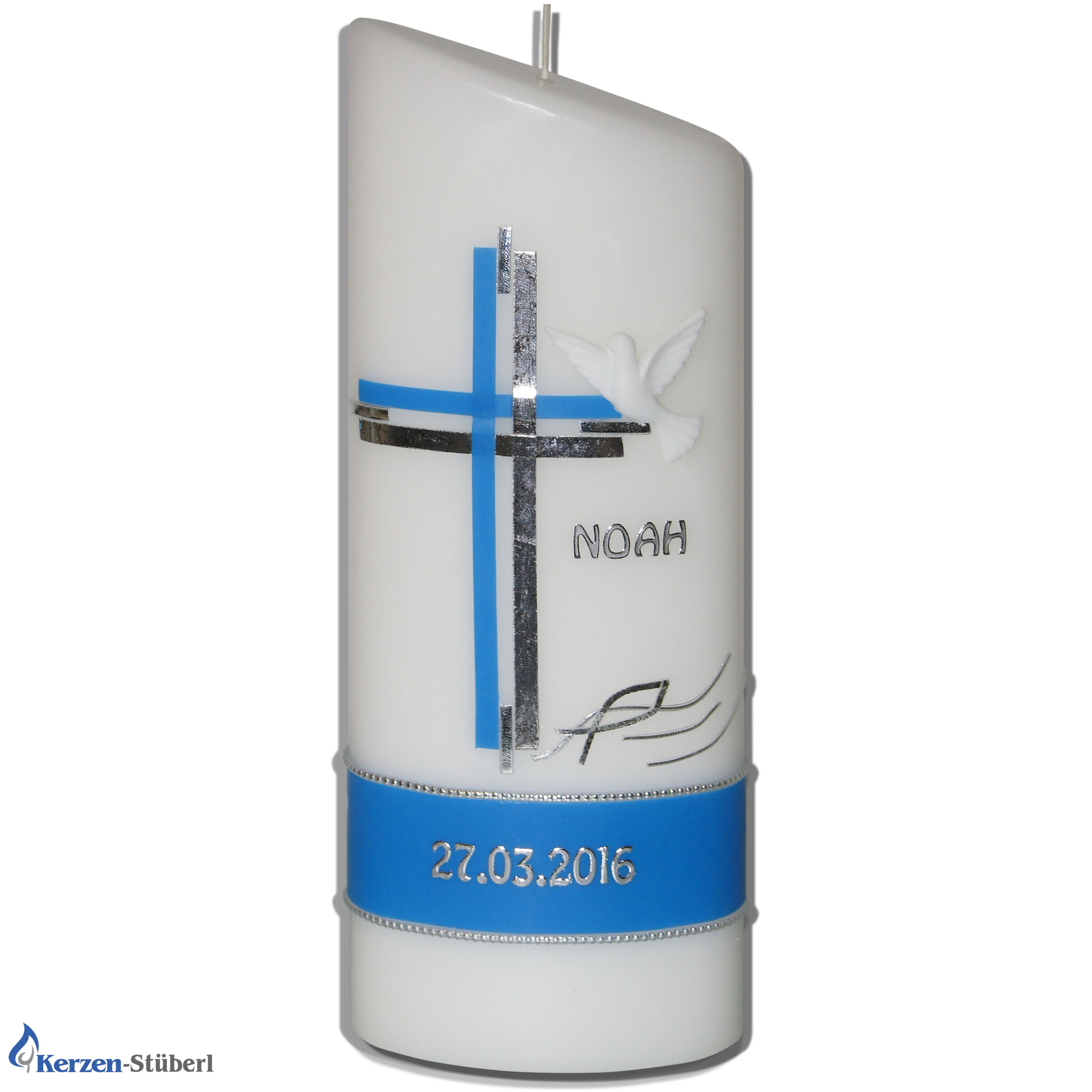 Taufkerze Blau Fur Jungen Modernes Kreuz Kerzen Stuberl