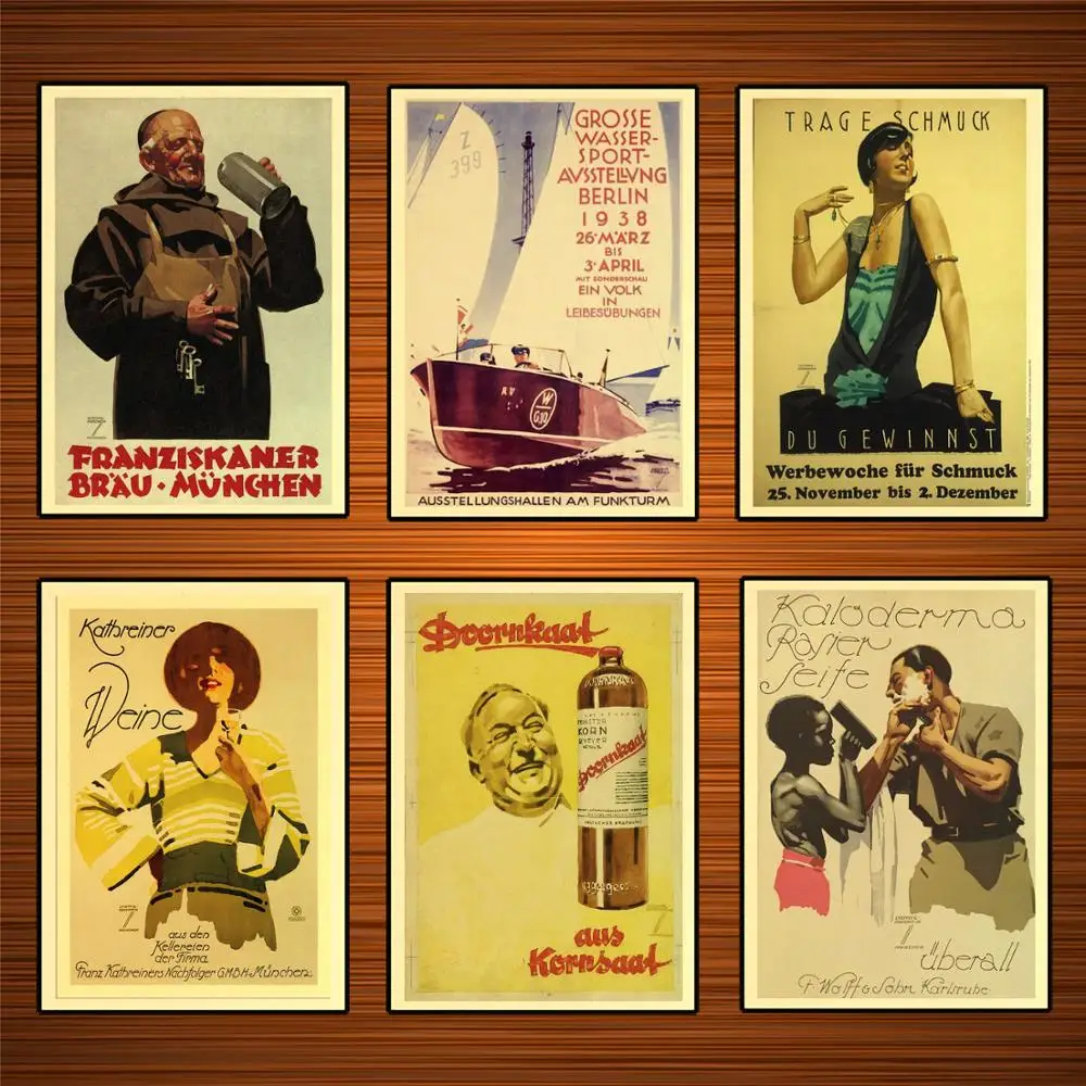Vintage 19s German Ads Poster Beer Shaving Soap Jewelry Kraft Posters Classic Canvas Paintings Wall Stickers Home Decor Gift Painting Calligraphy Aliexpress