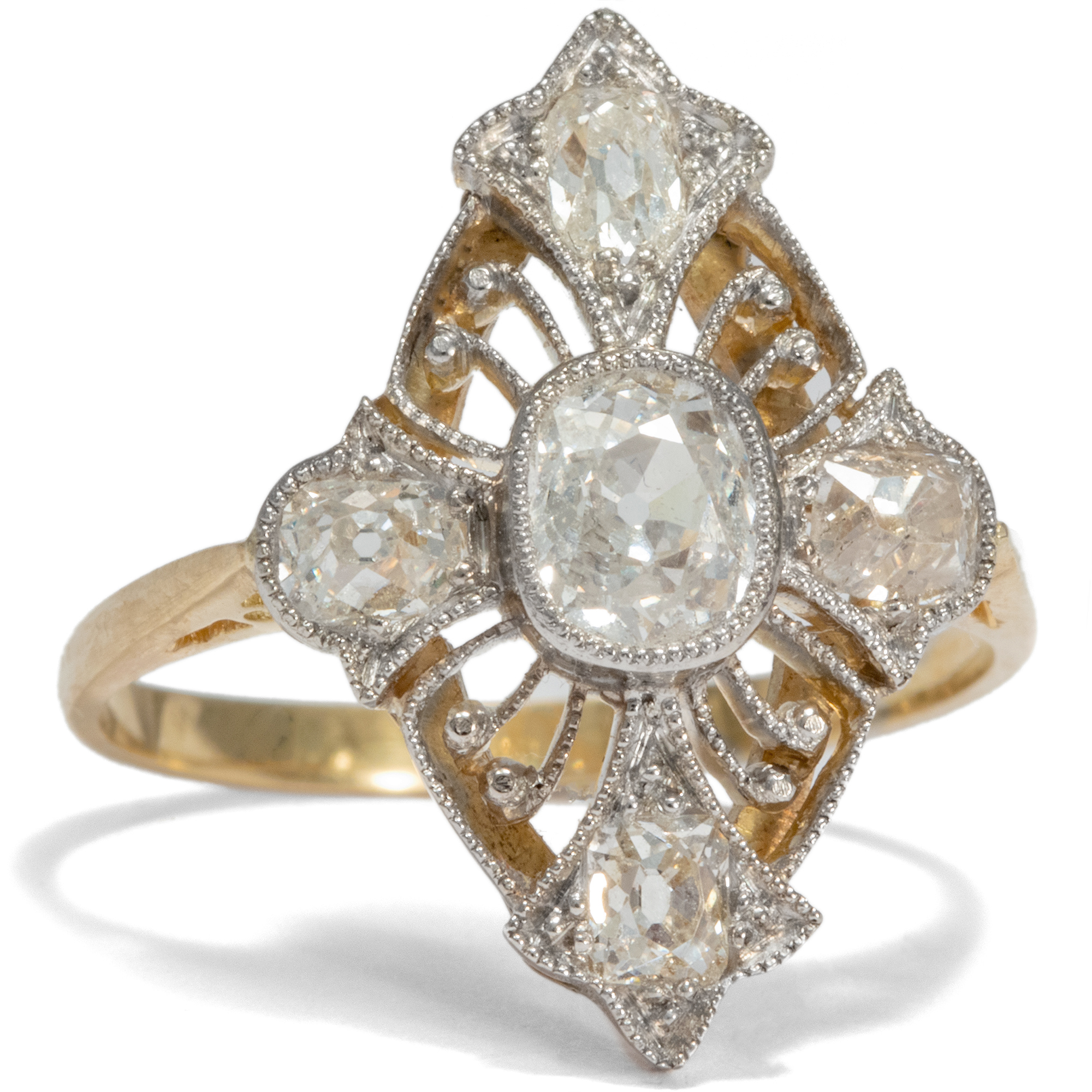 Ca 1950 18 Ct Gold Platinum Ring With Diamonds Cluster Vintage England Antique Jewellery Berlin Engagement Rings Wedding Bands