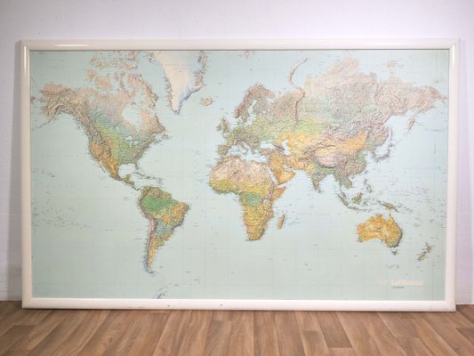 Large Vintage World Map Framed In Wood From Lufthansa For Sale At Pamono