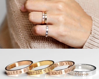Amazon Com 14k Solid Gold Engraved Ring Personalized Wedding Rings Mens Womens Wedding Band Her Wedding Band Classic Gold Ring Gold Wedding Band Handmade