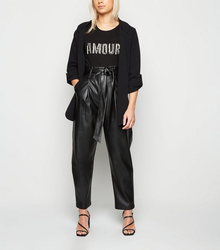 Petite Schwarze Beschichtete Hose In Leder Optik New Look