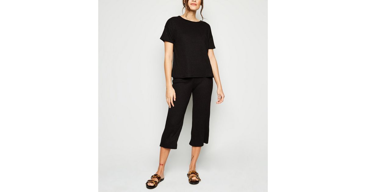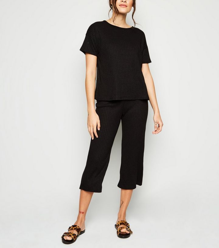Schwarze Gerippte Hose Mit Verkurzter Lange New Look