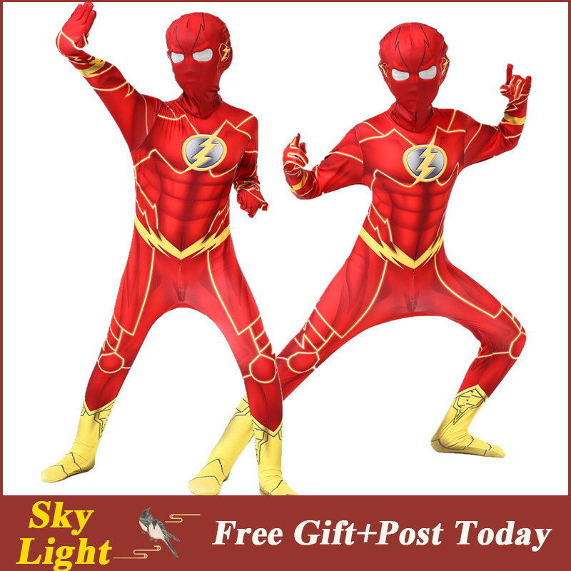 Halloween Adult Kids The Flash Cosplay Costume Kids Fantasy Comics Movie Carnival Party Clothes Superhero Barry Allen Zentai Bodysuit Suit Jumpsuits Shopee Singapore