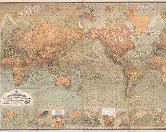 Huge Antique World Map 77 5 X 46 Vintage Elegant Home Etsy Antique World Map Elegant Homes Disney Home Decor