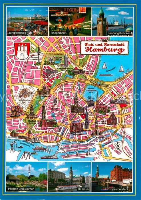 Ak Ansichtskarte Hamburg Stadtkarte Jungfernstieg Reeperbahn Speicherstadt Rathaus Hamburg Kat Hamburg Nr Kn651 Oldthing Ansichtskarten H