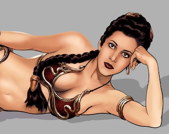 Leia's slave costume when she is held captive by Jabba the Hutt at the beginning of Return of the Jedi—made of brass and dubbed Leia's "Metal Bikini" or "Gold Bikini"—immediately made the character (and Fisher) a "generational sex symbol" celebrated by pinup posters, and later merchandising and cosplay. Princess Leia Slave 11X17 Artist's Print TheArtofGard From shop TheArtofGard 5 out of 5 stars (244) 244 reviews $ 1999 Favorite Princess Leia Art Print Star Wars Print / Leia Organa Print / Star Wars Poster / Star Wars Wall Art / Princess Leia Print/ Carrie Fisher. Apr 16, 13 Explore Michael Doesken's board "Slave Leia" on See more ideas about Leia, Princess leia, Princess leia slave.