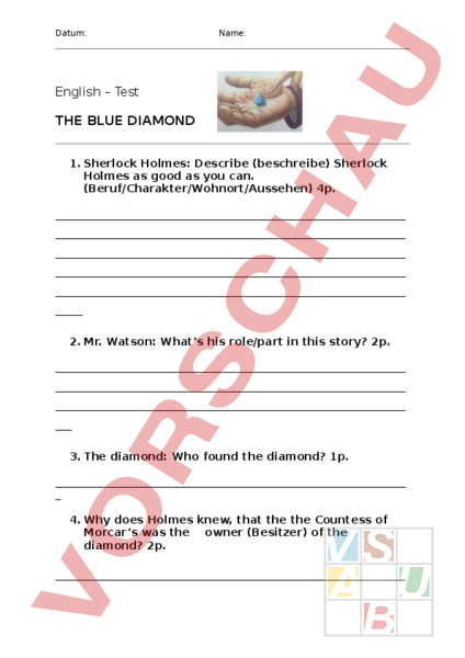 Arbeitsblatt Test The Blue Diamond New Hotline Englisch Lesen Literatur