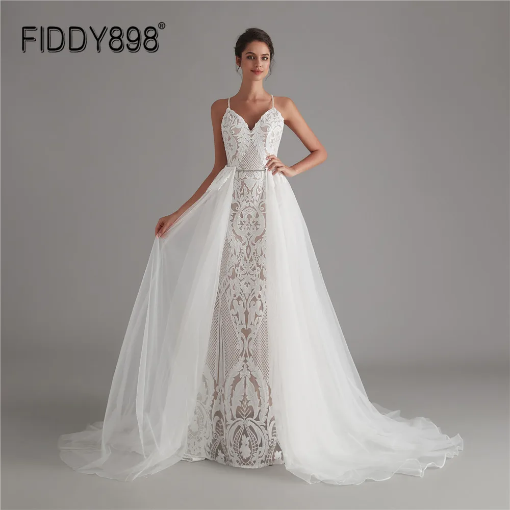 Vintage Spitze Hochzeit Kleid Pailletten Brautkleider Vestido De Noiva Meerjungfrau Braut Kleider Mit Abnehmbaren Zug Robe De Mariee Brautkleider Aliexpress