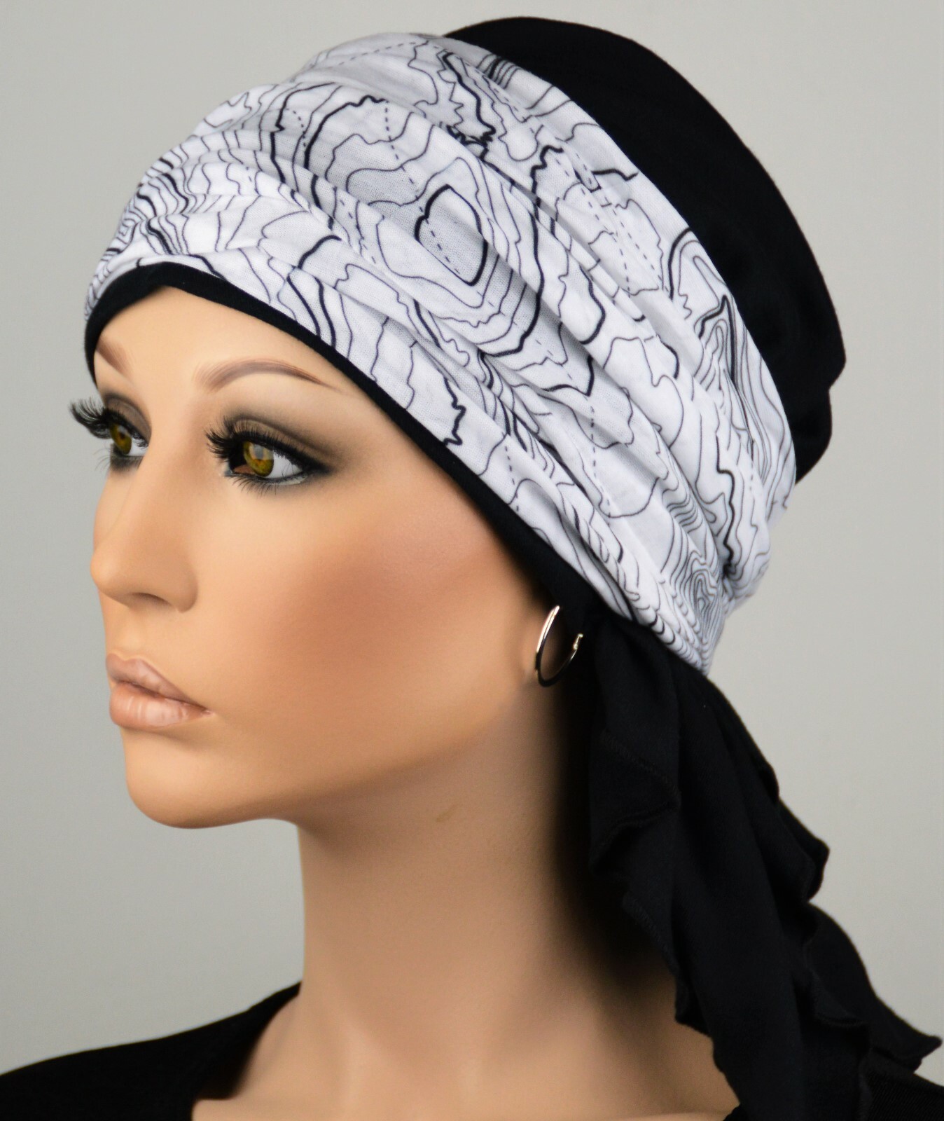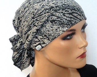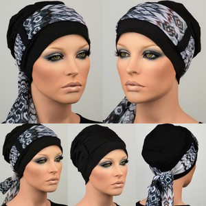 Einzigartige Kopftuchmutze Schwarz Weiss Chemokopfbedeckung Chemomutze Chemotuch Tuch Krebs Kopftuch Krebs Mutze Krebs Mutze Chemo Band Accessories Chemo