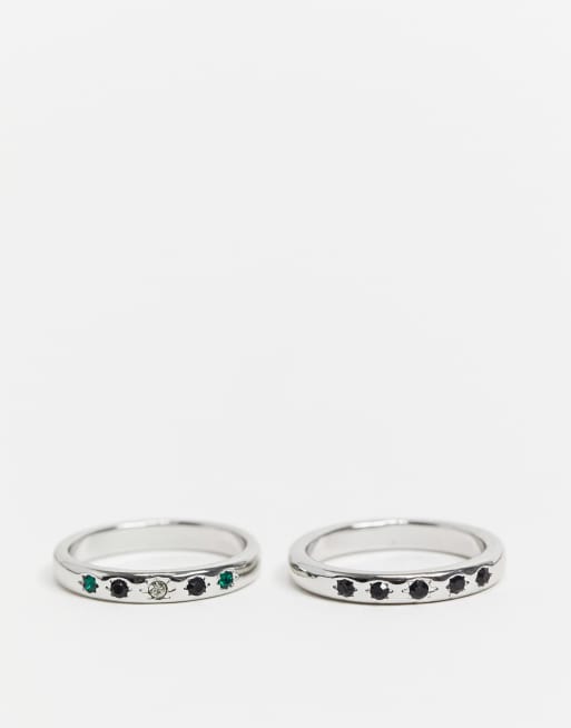 River Island Ring Im 2er Pack In Silber Mit Schwarzen Steinen Iebem Morelos