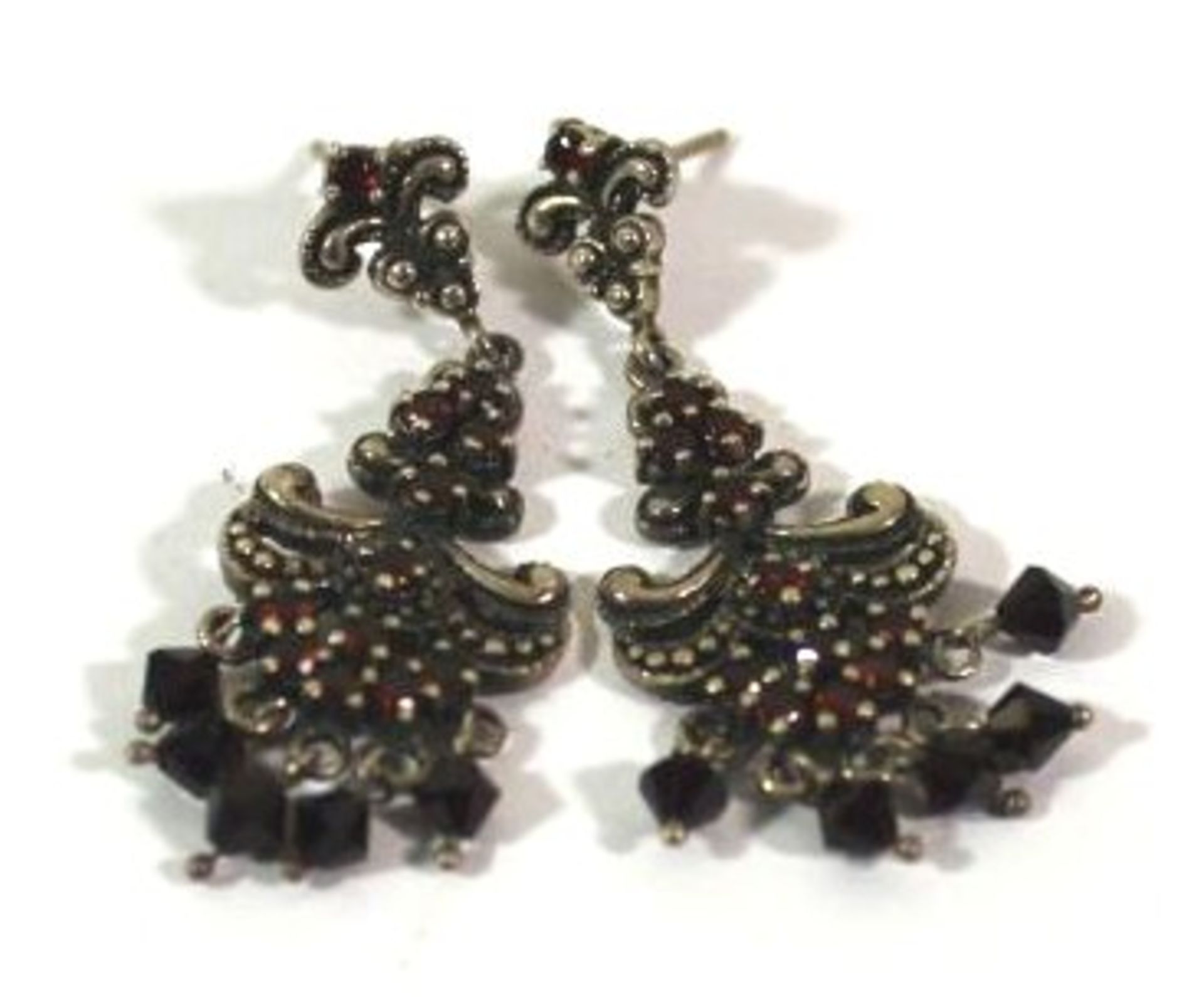 Paar 925er Silber Ohrstecker Besetzt Mit Roten Steinen Granat Sowie Schwarzen Steinen Zus 8