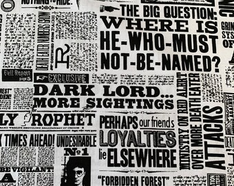 Harry Potter Newsprint Newspaper Daily Prophet Dark Lord Ministry Of Magic Deluxe Cotton Fabric