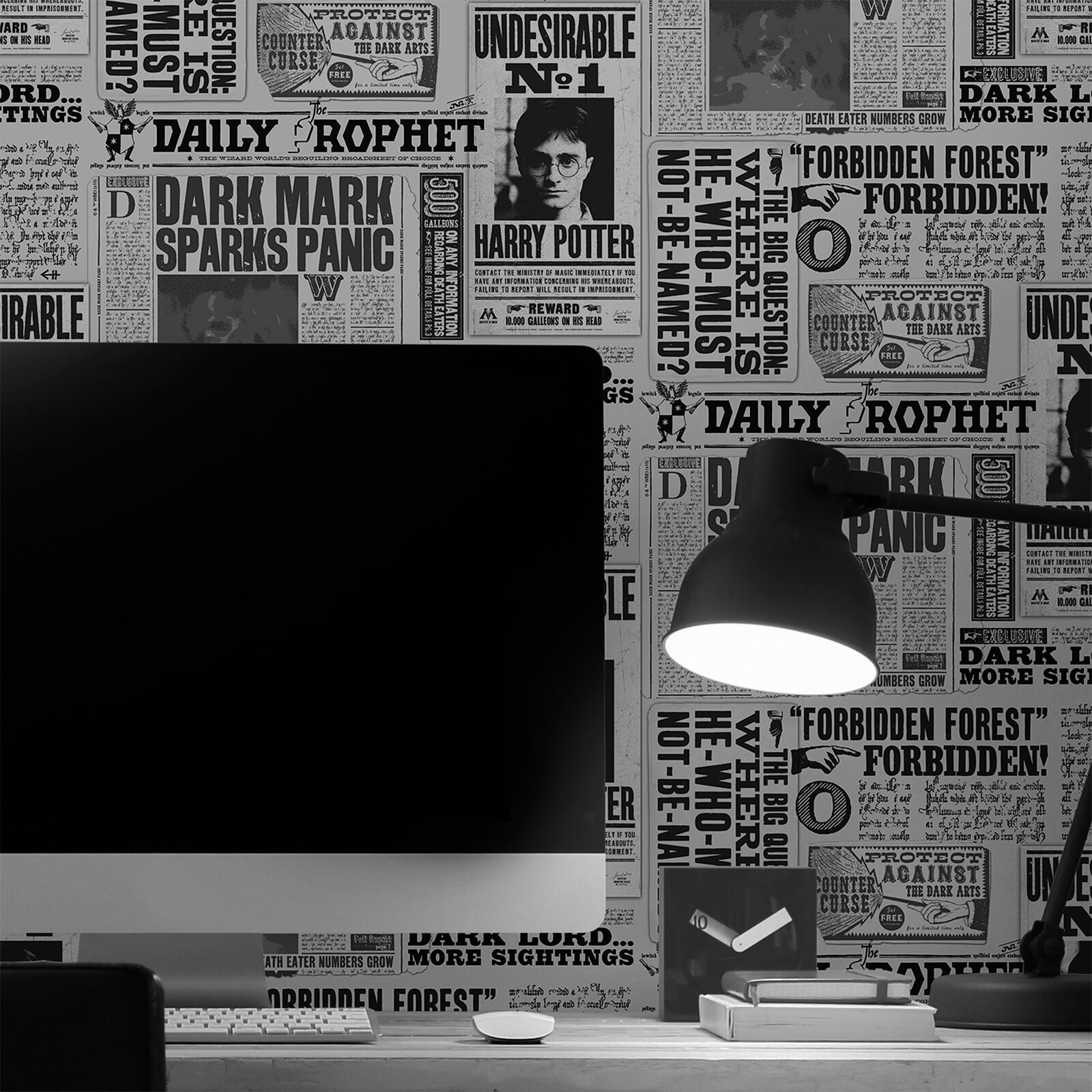 Warner Brothers Harry Potter Daily Prophet Mono Black White Wallpaper Iwoot Uk