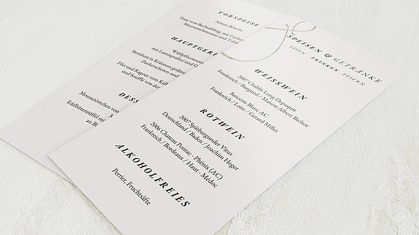 Farbigkeit, Stil und Dekoelemente sollten auf die restliche Dekoration der Hochzeit abgestimmt sein Trägt die Braut zB Perlen, Blumen oder Kristalle im Haar, könnten Sie diese als Streuartikel auch für die Dekoration der Festtafel verwenden und so ein perfektes Gesamtbild für Ihre Feierlichkeit kreieren. Ihre Hochzeit bringt bereits genug Arbeit mit sich erleichtern Sie sich diese Zeit und nutzen Sie unser Gestaltungsprogramm für alle Hochzeitskarten eben auch die Menükarte Jede Menükarte ist einzigartig Schauen Sie sich ganz in Ruhe in unserer Auswahl um Wir haben jede Menükarte schon sorgfältig und liebevoll für Sie designt. Ihre Hochzeit bringt bereits genug Arbeit mit sich erleichtern Sie sich diese Zeit und nutzen Sie unser Gestaltungsprogramm für alle Hochzeitskarten eben auch die Menükarte Jede Menükarte ist einzigartig Schauen Sie sich ganz in Ruhe in unserer Auswahl um Wir haben jede Menükarte schon sorgfältig und liebevoll für Sie designt.
