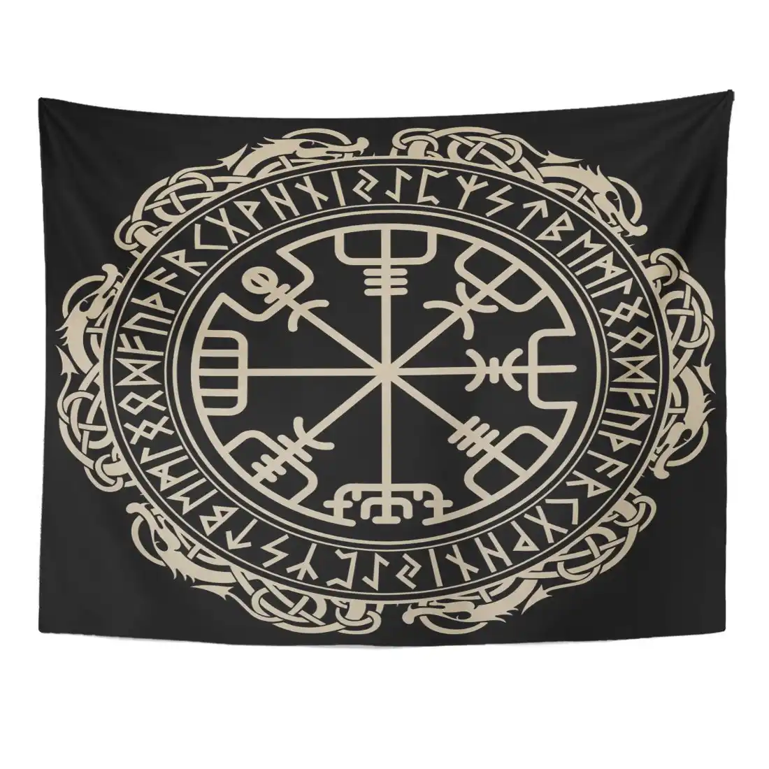 Black Celtic Viking Design Magical Runic Compass Vegvisir In The Circle Of Norse Runes And Dragons Tattoo Tapestry Home Decor Tapestry Aliexpress