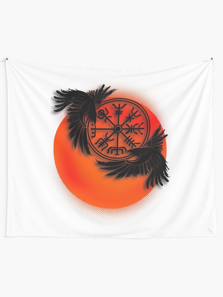 Odin S Raven With Viking Compass Tattoo Design Tapestry By Luminorb Redbubble