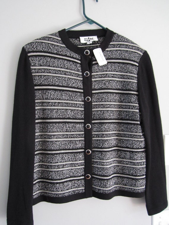 Vintage St John Knits Black And White Striped Cardigan Size 8 Etsy