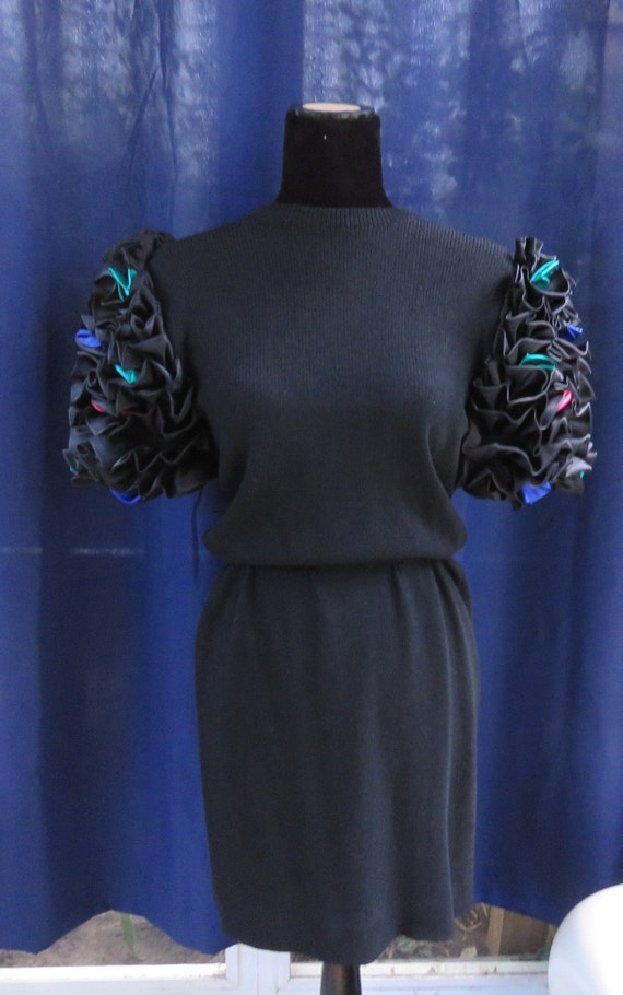 Vintage St John Black Knit Dress W Swarovski Crystal Etsy
