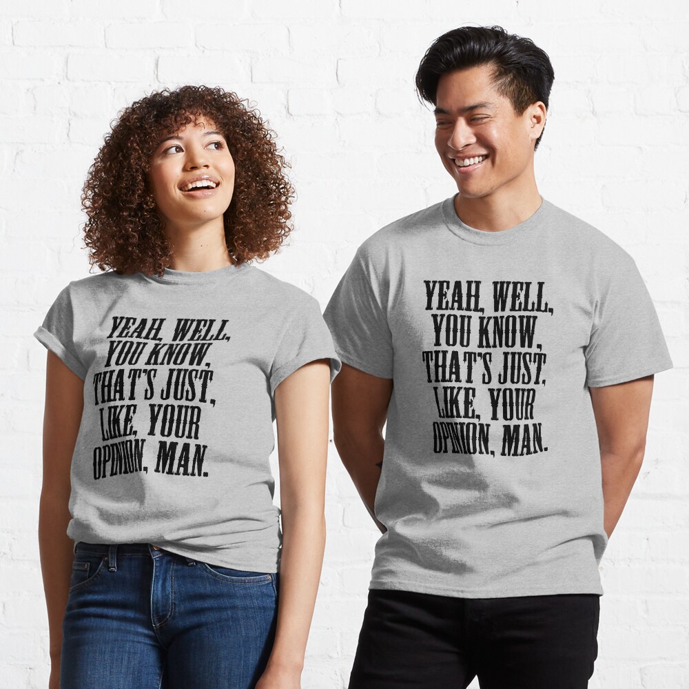 Yeah, well, that's just, like, your opinion, man — ron Christianson (@OpposableBum) January 24, 19 not all heroes wear capes some have been wearing the same ratty cardigan for the past 21. Yeah, Well, That's Just, Like, Your Opinion, Man, Mens Printed TShirt 100% Cotton White 141gsm, Colours 150gsm Professionally printed garment Fully machine washable wash inside out and do not iron over print. “Well, it’s too bad—I don’t know why the Official Yeah well that’s just like your opinion man vintage shirt and I love this president’s afraid to.