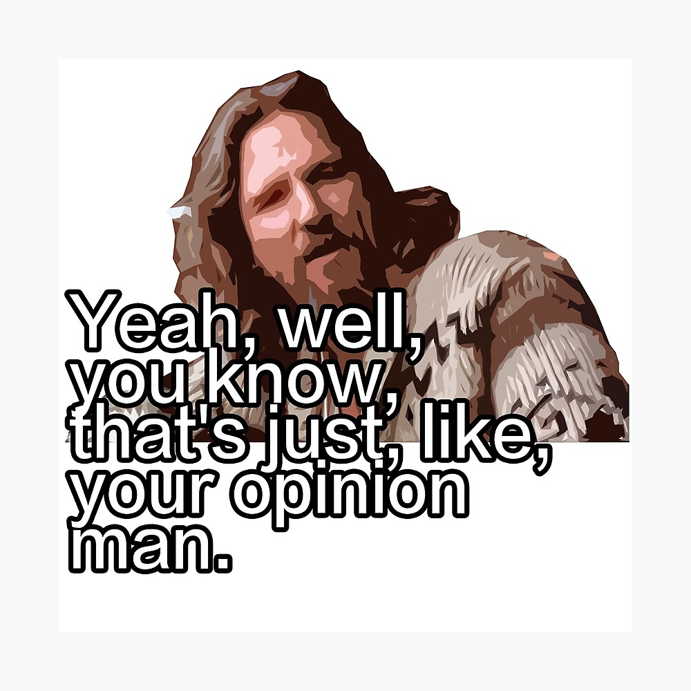 That's just like your opinion man 2,395 likes · 4 talking about this Community. 1 like All Members Who Liked This Quote None yet!. Yeah, well, you know, that’s just like, your opinion, man Jeffrey 'The Dude' Lebowski Buy Now Do Some Magic!.
