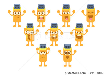 Usb Stick Emoji Character Set Stock Illustration