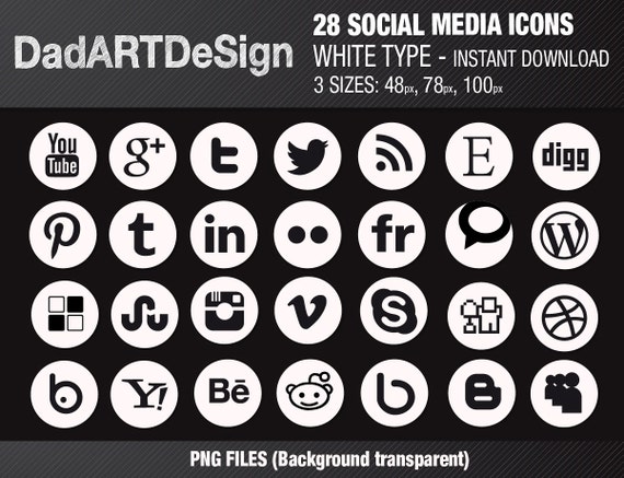 28 Social Media Icons Set White Instant Download 3 Sizes Etsy