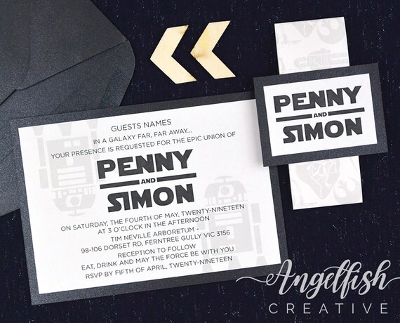Well you're in luck, because here they come There are 2467 star wars invitations for sale on Etsy, and they cost $765 on average The most common star wars invitations material is ceramic The most popular color?. It's May the fourth, aka Star Wars DayOn this day, Star Wars fans big and small come together to celebrate one of the most epic sagas in history But if one day a year isn't enough for you, nothing says you can't include some classic movie details in your wedding day (or weekend!). 4 Custom Star Wars wedding invitations There are so many creative Star Wars wedding invitations to choose from, like this (by MarryMakings) buy here And these “A New Saga Begins” invitations by OwlandLuna buy here Love these by PapernPeonies!.
